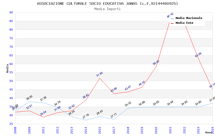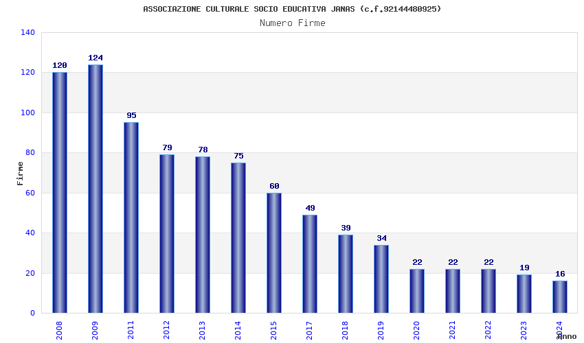 | Anno | Firme | Importi | Media | Naz. | Reg. | Prov. | Comu. |