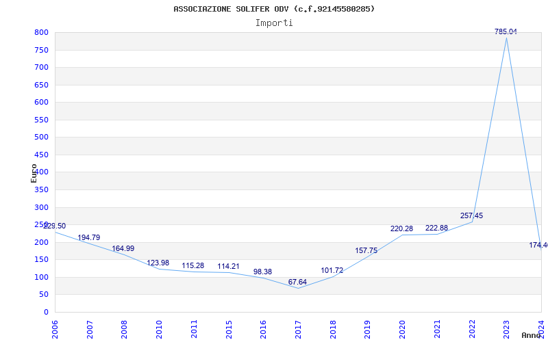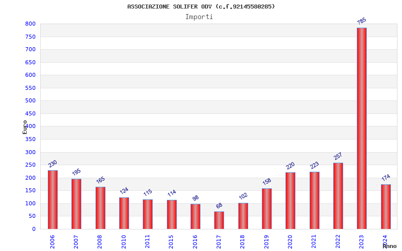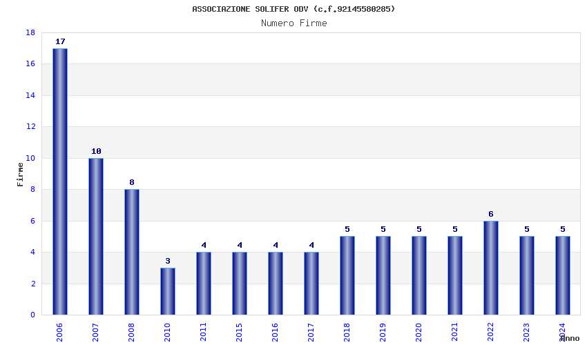 | Anno | Firme | Importi | Media | Naz. | Reg. | Prov. | Comu. |