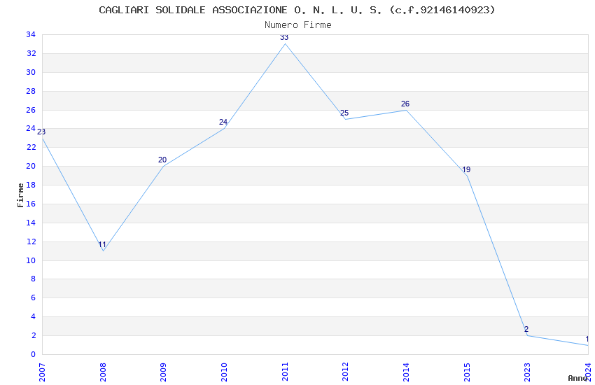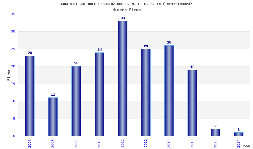 | Anno | Firme | Importi | Media | Naz. | Reg. | Prov. | Comu. |