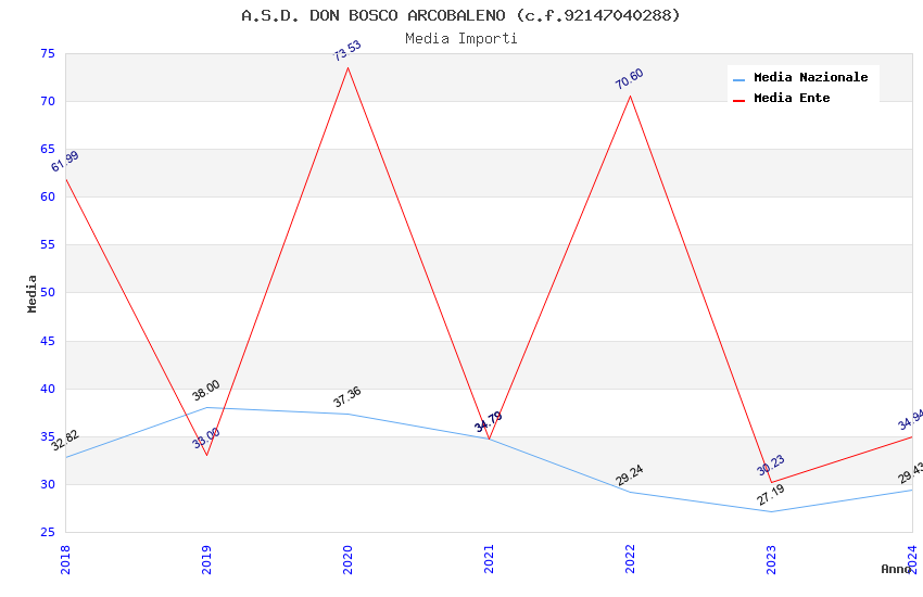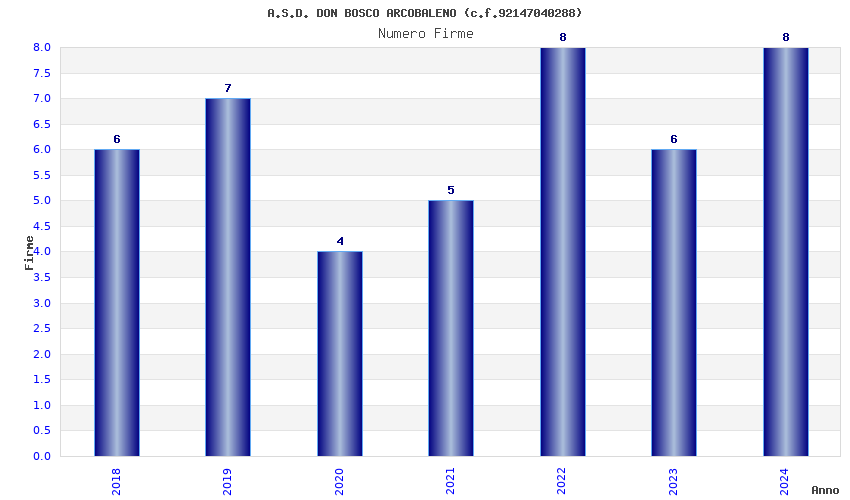 | Anno | Firme | Importi | Media | Naz. | Reg. | Prov. | Comu. |