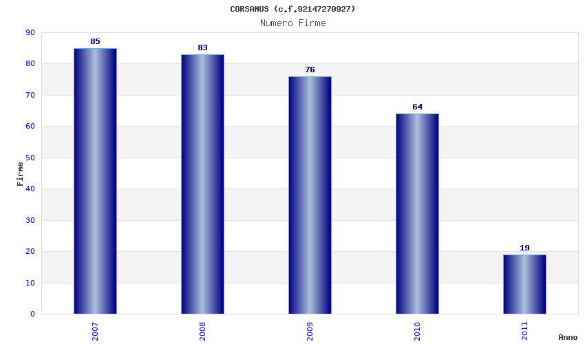 | Anno | Firme | Importi | Media | Naz. | Reg. | Prov. | Comu. |