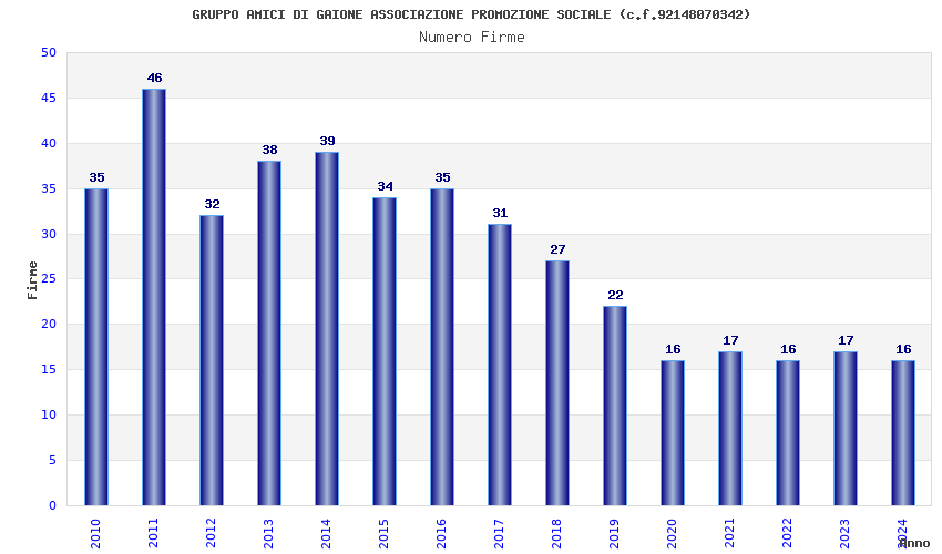 Anno Firme Importi Media Naz. Reg. Prov. Comu.