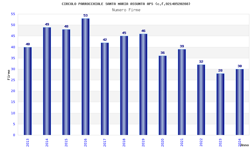 | Anno | Firme | Importi | Media | Naz. | Reg. | Prov. | Comu. |