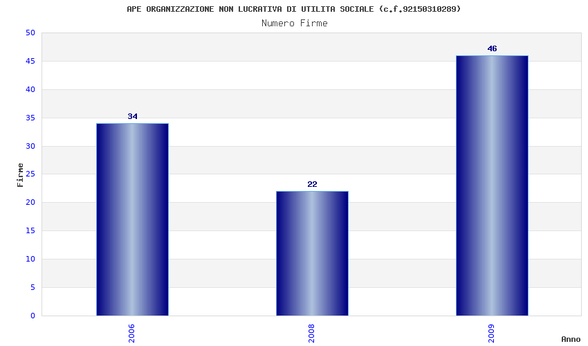 | Anno | Firme | Importi | Media | Naz. | Reg. | Prov. | Comu. |