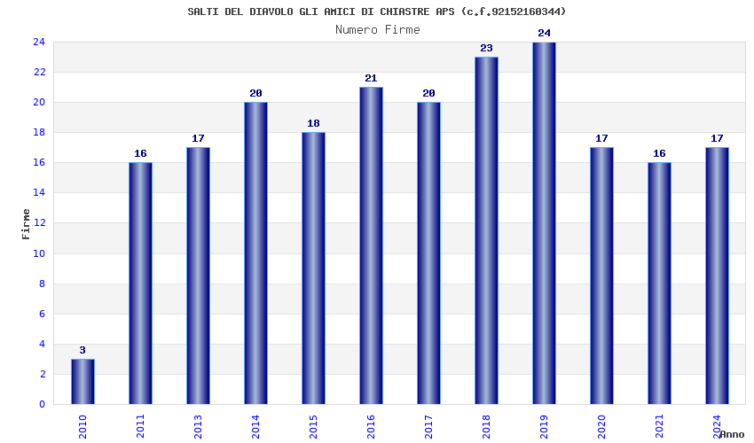 | Anno | Firme | Importi | Media | Naz. | Reg. | Prov. | Comu. |