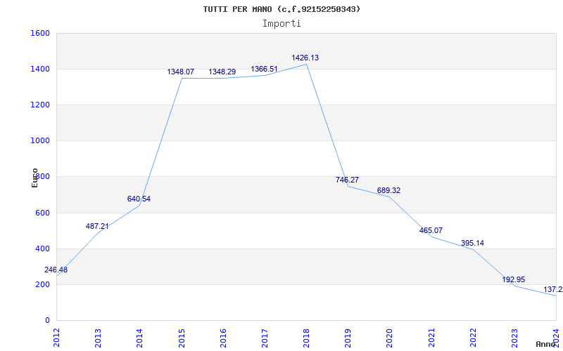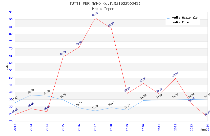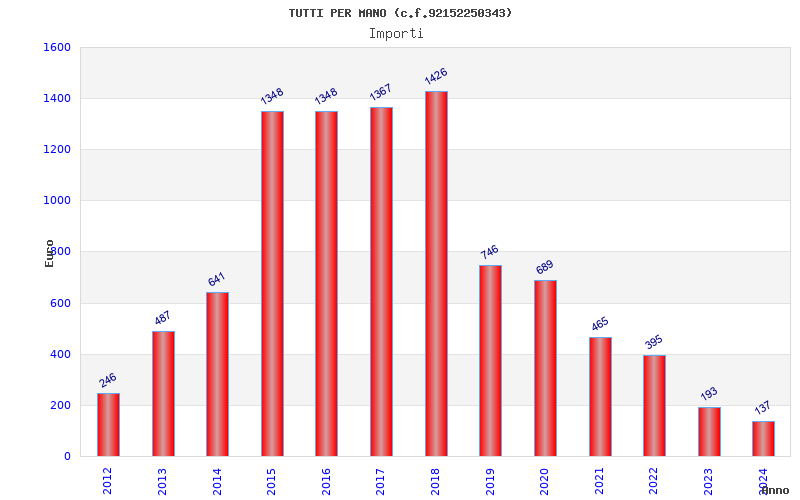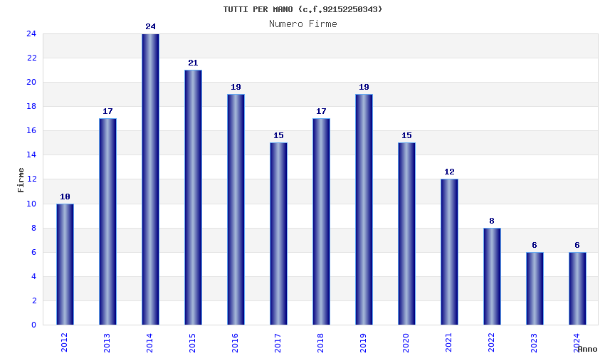 | Anno | Firme | Importi | Media | Naz. | Reg. | Prov. | Comu. |