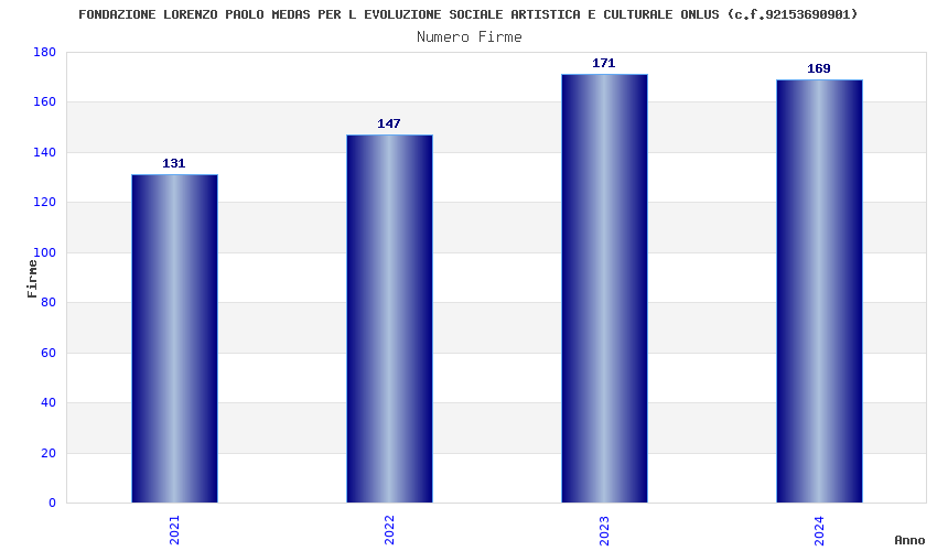| Anno | Firme | Importi | Media | Naz. | Reg. | Prov. | Comu. |