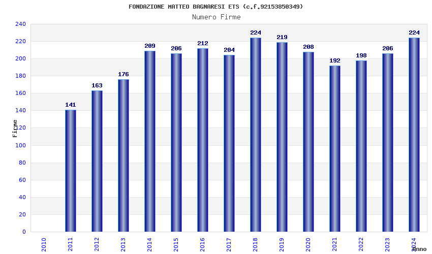 | Anno | Firme | Importi | Media | Naz. | Reg. | Prov. | Comu. |