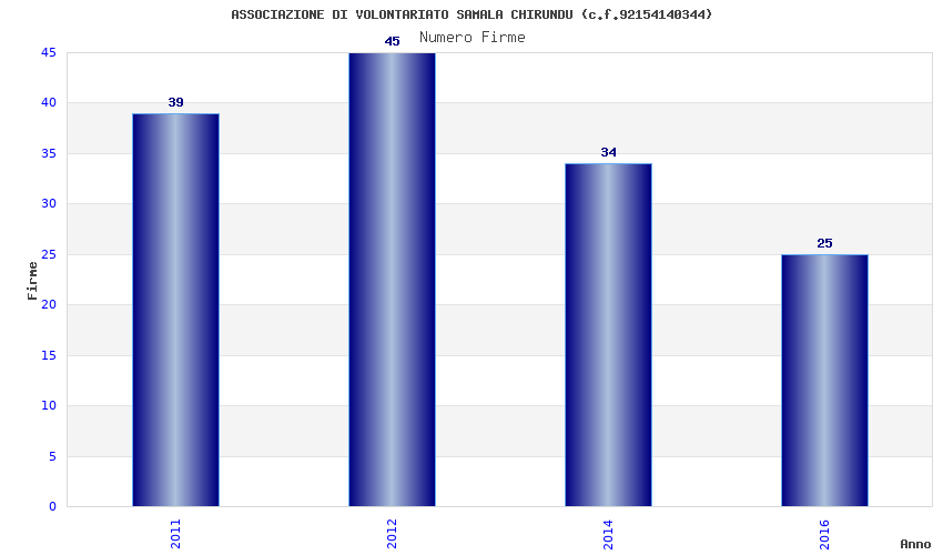 | Anno | Firme | Importi | Media | Naz. | Reg. | Prov. | Comu. |