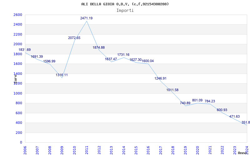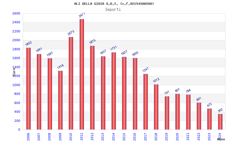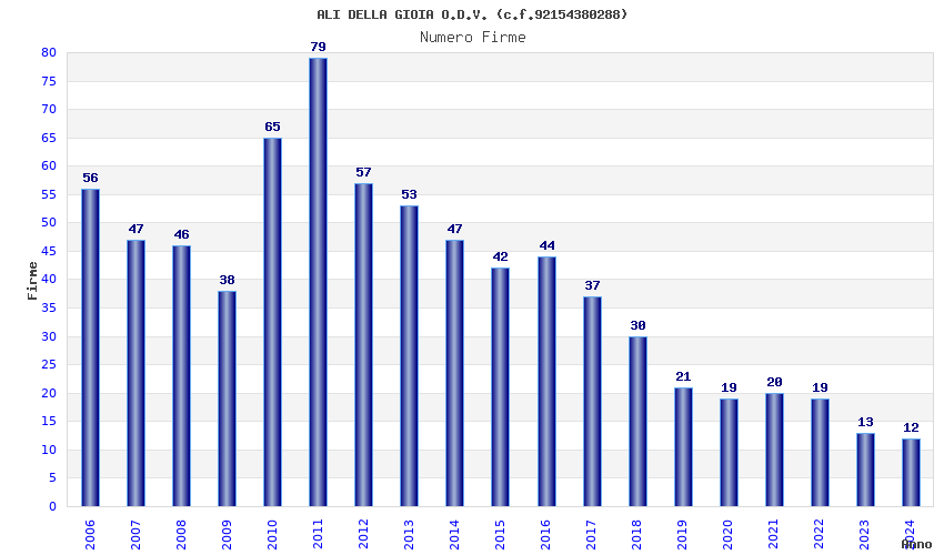 | Anno | Firme | Importi | Media | Naz. | Reg. | Prov. | Comu. |
