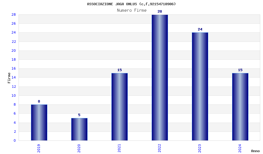 | Anno | Firme | Importi | Media | Naz. | Reg. | Prov. | Comu. |