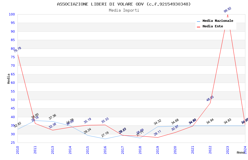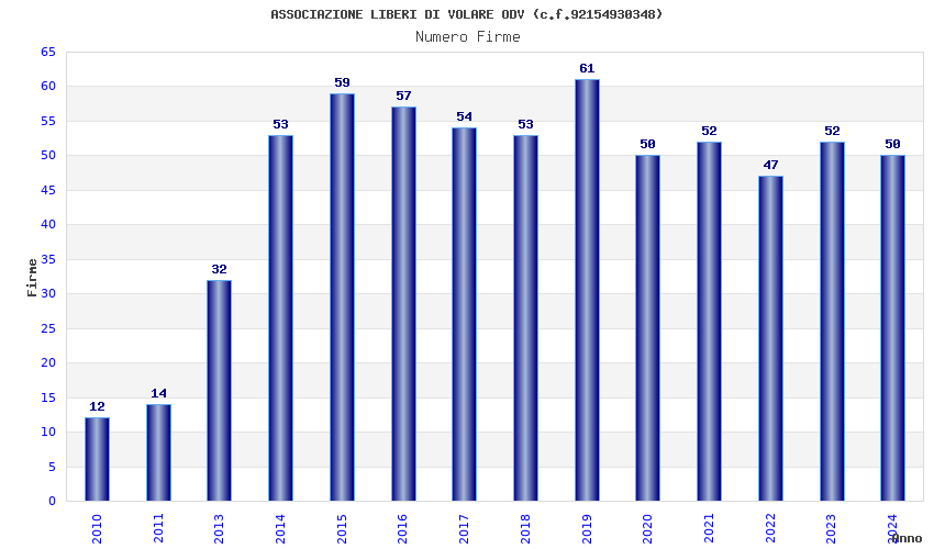 | Anno | Firme | Importi | Media | Naz. | Reg. | Prov. | Comu. |