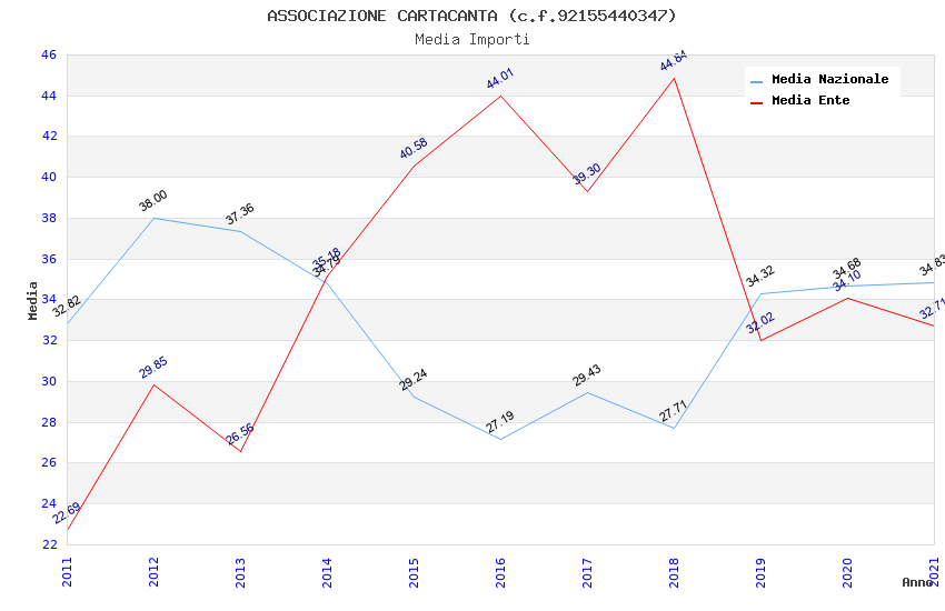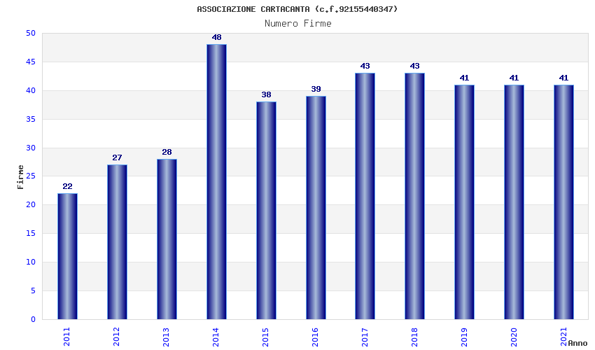| Anno | Firme | Importi | Media | Naz. | Reg. | Prov. | Comu. |