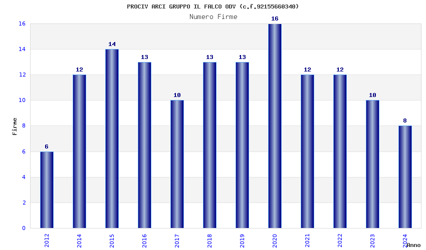| Anno | Firme | Importi | Media | Naz. | Reg. | Prov. | Comu. |