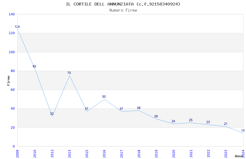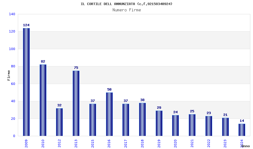| Anno | Firme | Importi | Media | Naz. | Reg. | Prov. | Comu. |