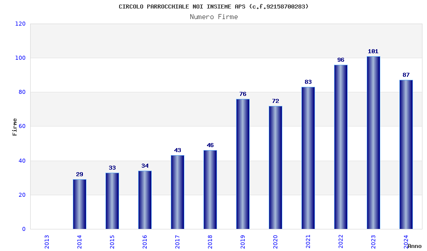 | Anno | Firme | Importi | Media | Naz. | Reg. | Prov. | Comu. |