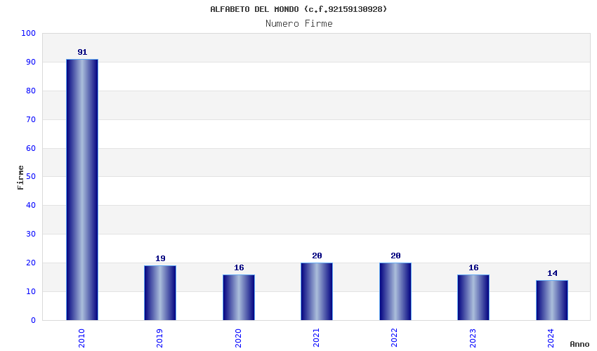| Anno | Firme | Importi | Media | Naz. | Reg. | Prov. | Comu. |