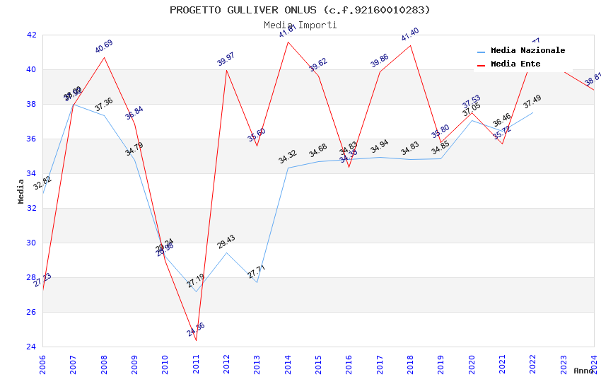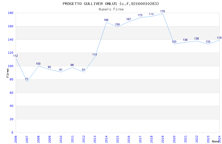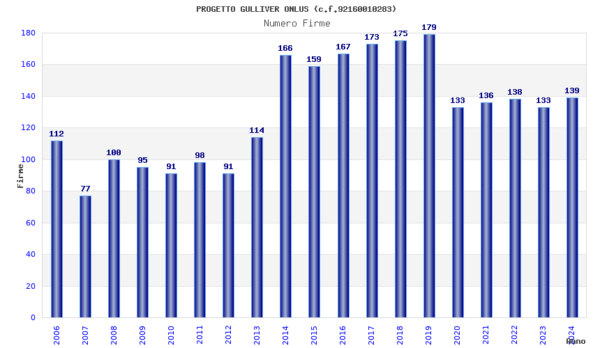 | Anno | Firme | Importi | Media | Naz. | Reg. | Prov. | Comu. |