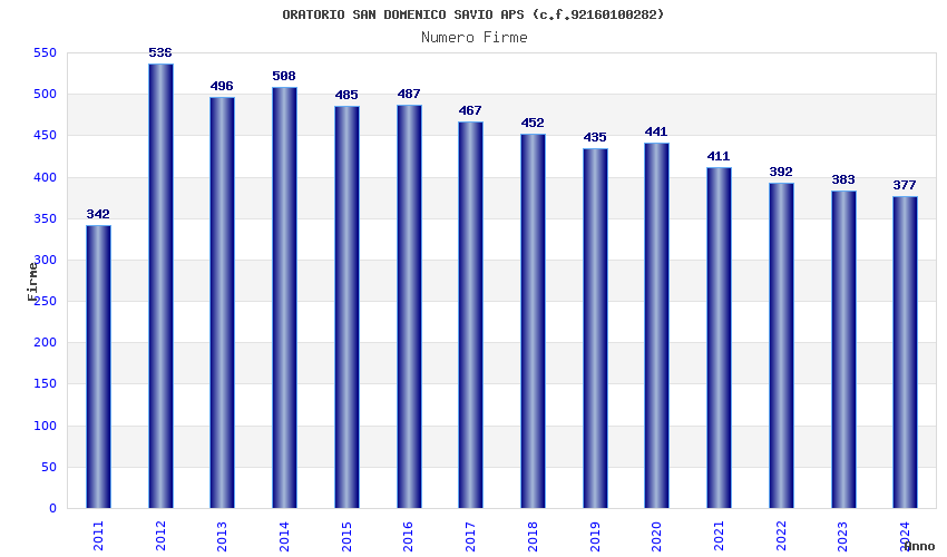| Anno | Firme | Importi | Media | Naz. | Reg. | Prov. | Comu. |