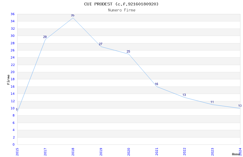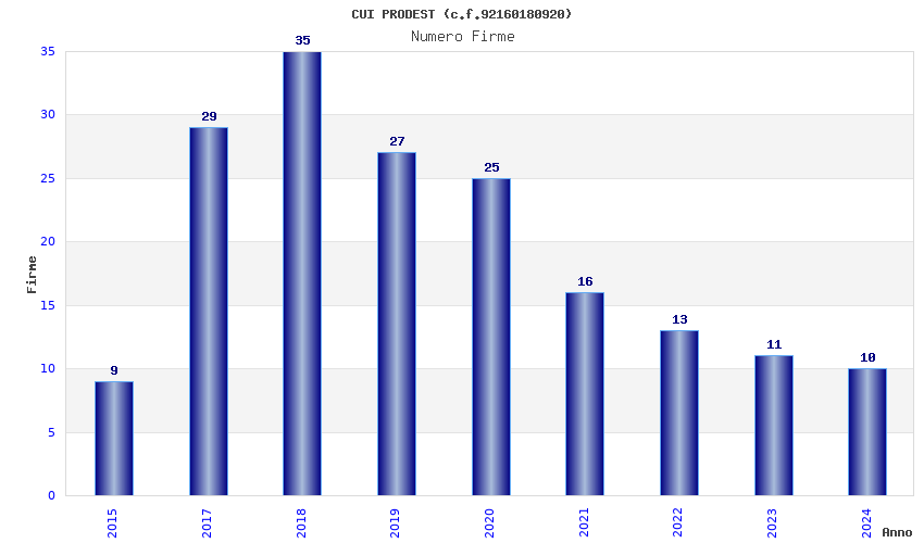 | Anno | Firme | Importi | Media | Naz. | Reg. | Prov. | Comu. |