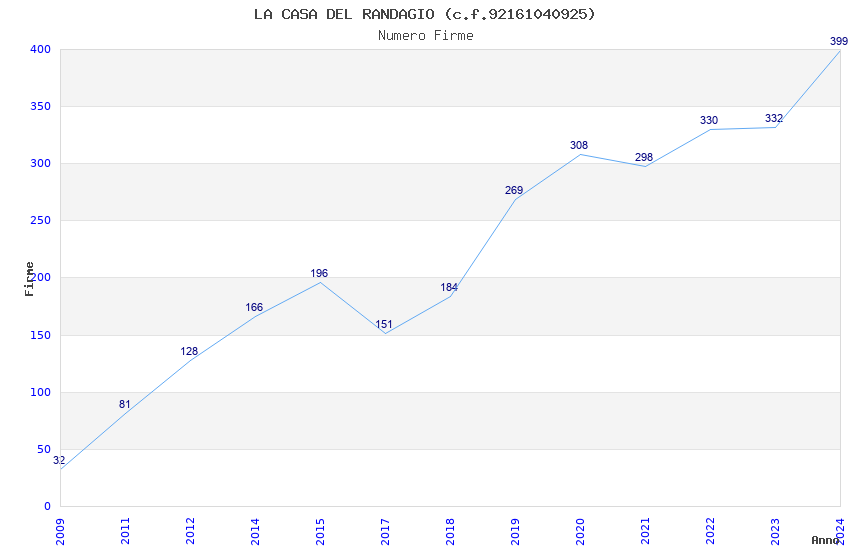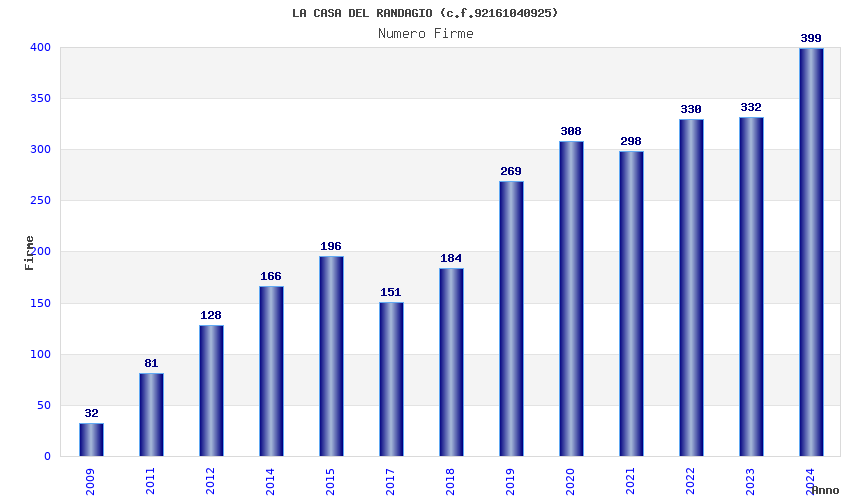 | 2024 | 399 | 8.762,05 | 21,96 | 5.796 | 73 | 32 | 22 |