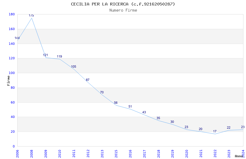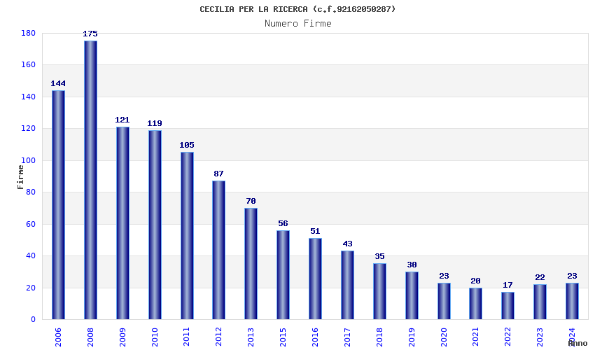 | Anno | Firme | Importi | Media | Naz. | Reg. | Prov. | Comu. |