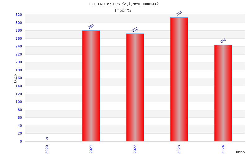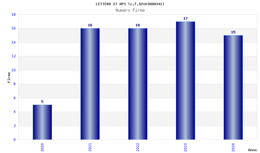 | Anno | Firme | Importi | Media | Naz. | Reg. | Prov. | Comu. |