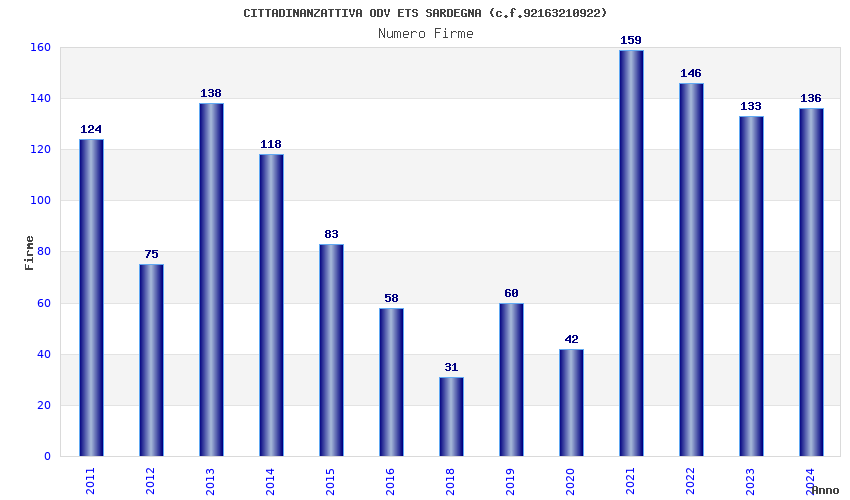 | Anno | Firme | Importi | Media | Naz. | Reg. | Prov. | Comu. |