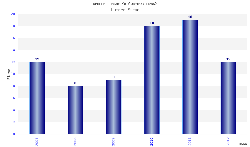 | Anno | Firme | Importi | Media | Naz. | Reg. | Prov. | Comu. |