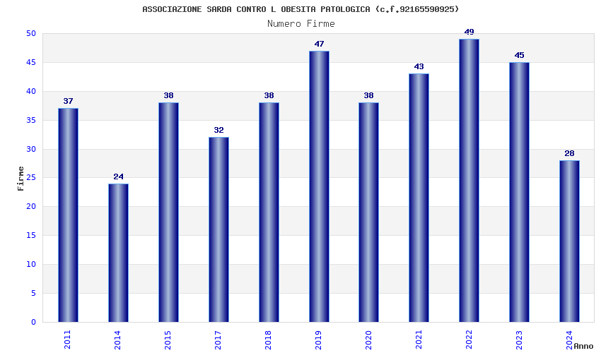 | Anno | Firme | Importi | Media | Naz. | Reg. | Prov. | Comu. |