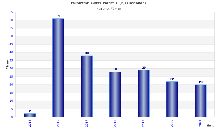 | Anno | Firme | Importi | Media | Naz. | Reg. | Prov. | Comu. |