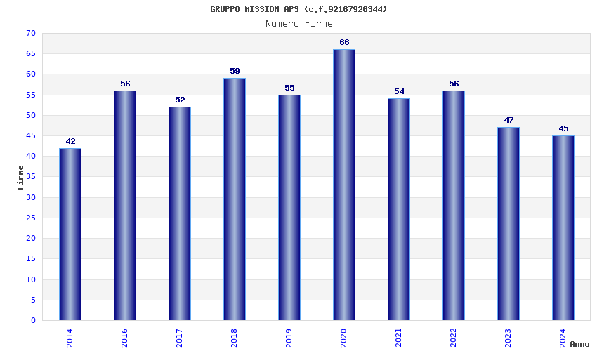 | Anno | Firme | Importi | Media | Naz. | Reg. | Prov. | Comu. |