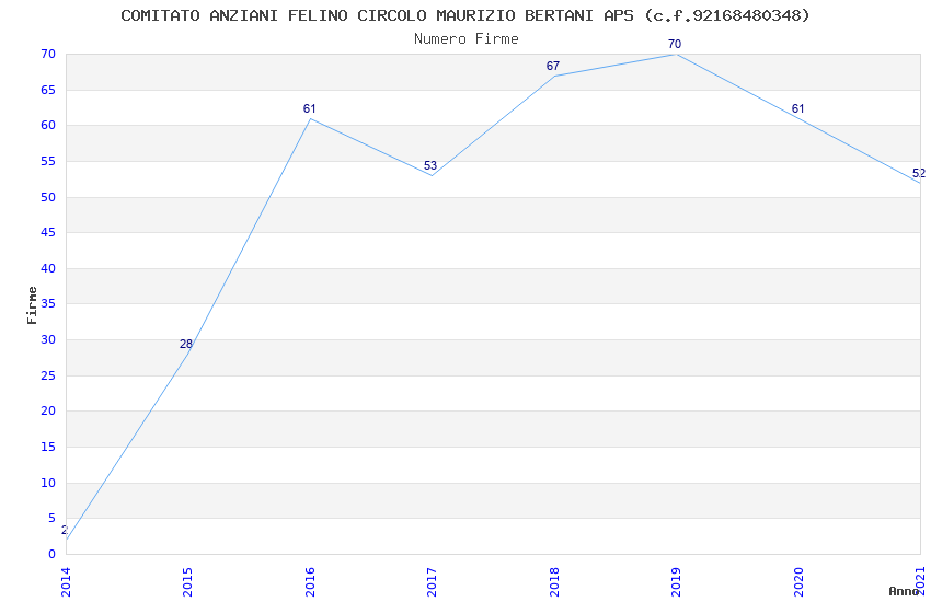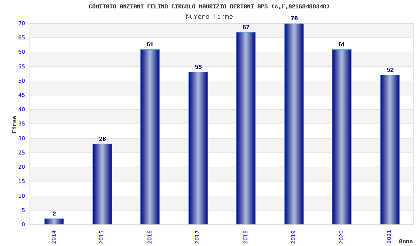 | Anno | Firme | Importi | Media | Naz. | Reg. | Prov. | Comu. |