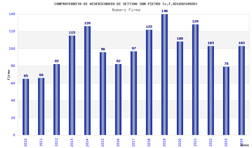 | Anno | Firme | Importi | Media | Naz. | Reg. | Prov. | Comu. |
