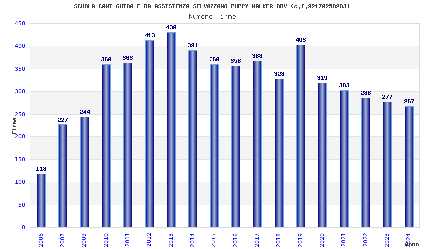 | Anno | Firme | Importi | Media | Naz. | Reg. | Prov. | Comu. |