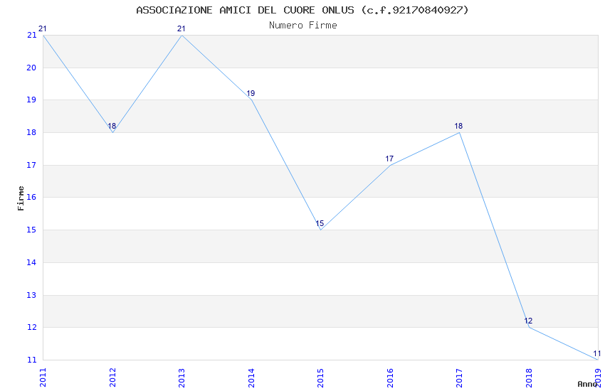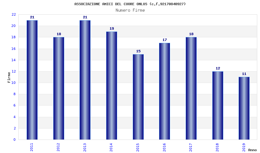 | Anno | Firme | Importi | Media | Naz. | Reg. | Prov. | Comu. |