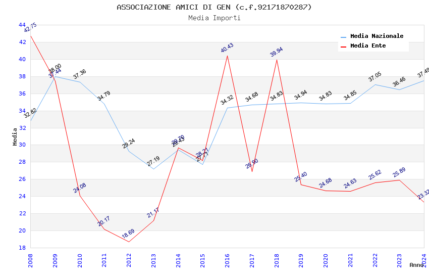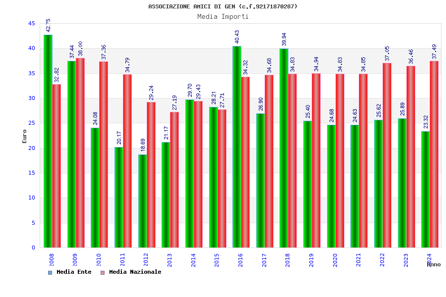 | Anno | Firme | Importi | Media | Naz. | Reg. | Prov. | Comu. |