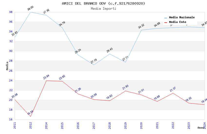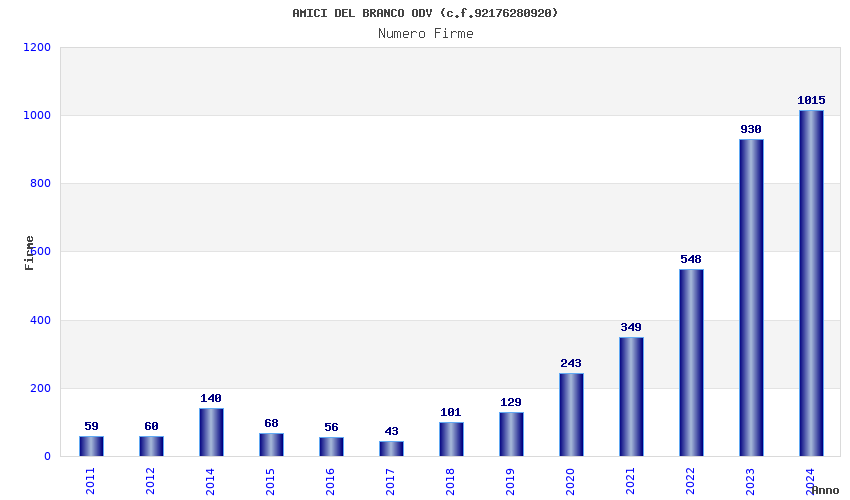 | Anno | Firme | Importi | Media | Naz. | Reg. | Prov. | Comu. |