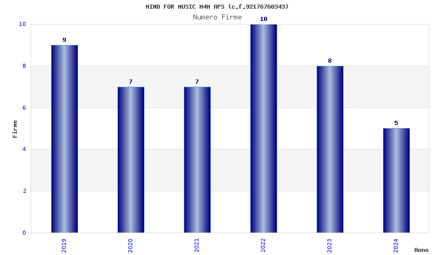 | Anno | Firme | Importi | Media | Naz. | Reg. | Prov. | Comu. |