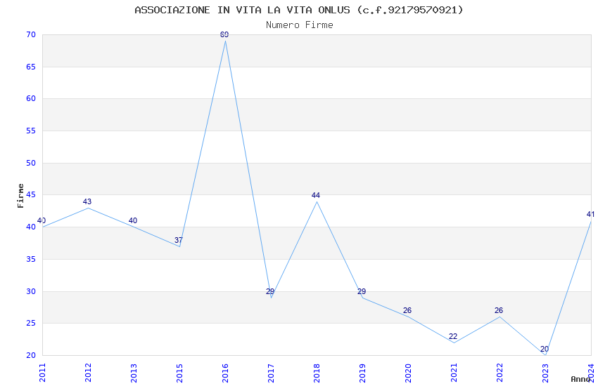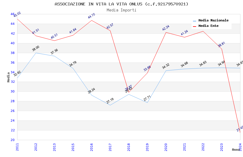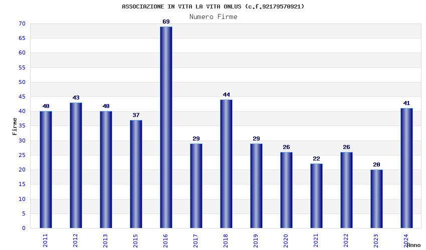 | Anno | Firme | Importi | Media | Naz. | Reg. | Prov. | Comu. |