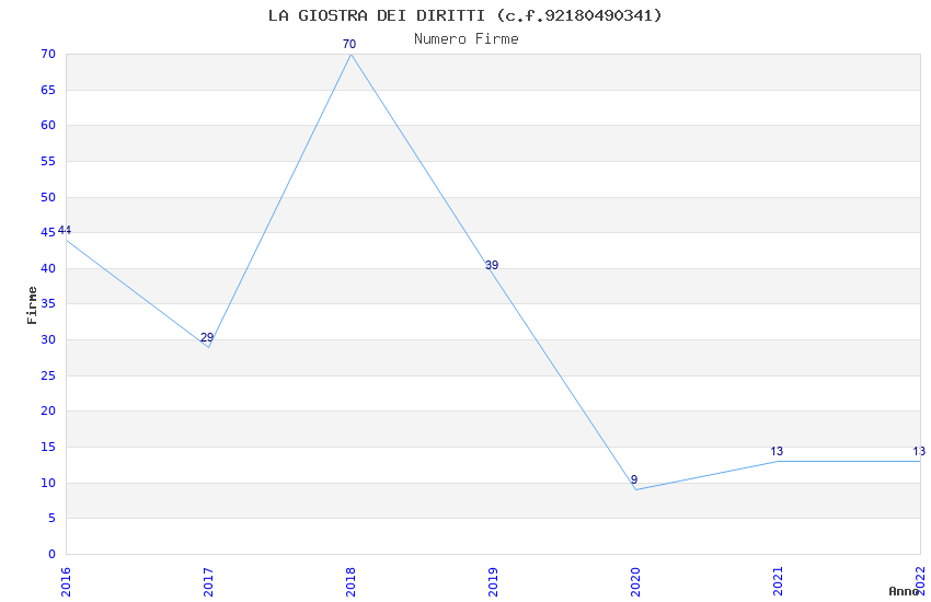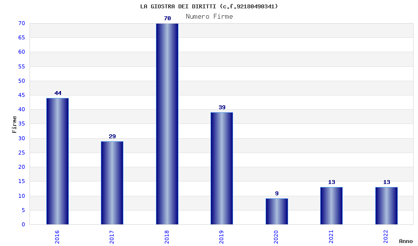 | Anno | Firme | Importi | Media | Naz. | Reg. | Prov. | Comu. |