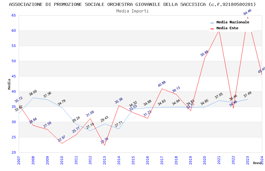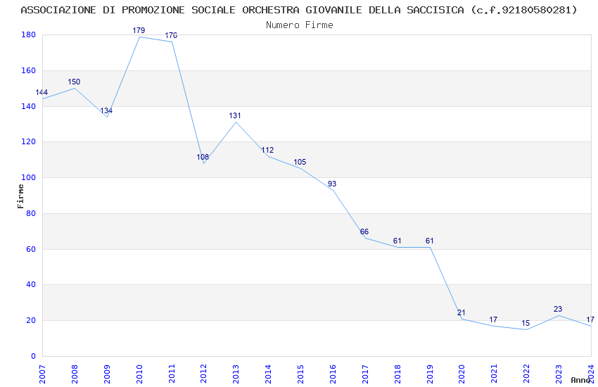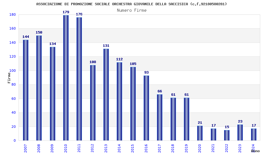 | Anno | Firme | Importi | Media | Naz. | Reg. | Prov. | Comu. |