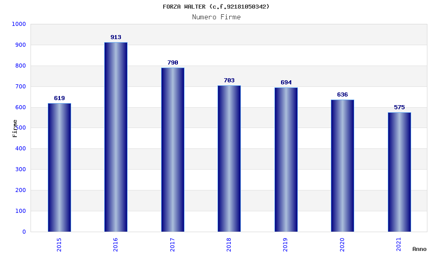 | Anno | Firme | Importi | Media | Naz. | Reg. | Prov. | Comu. |