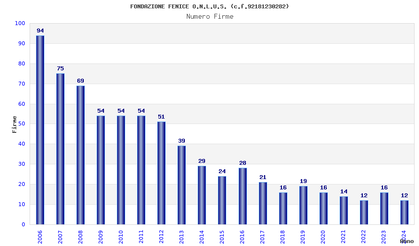 | Anno | Firme | Importi | Media | Naz. | Reg. | Prov. | Comu. |