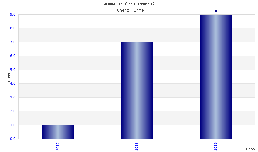 | Anno | Firme | Importi | Media | Naz. | Reg. | Prov. | Comu. |