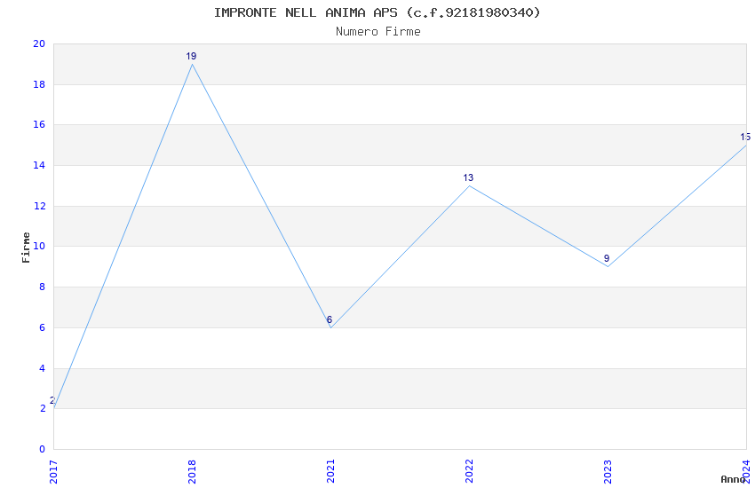| Anno | Firme | Importi | Media | Naz. | Reg. | Prov. | Comu. |