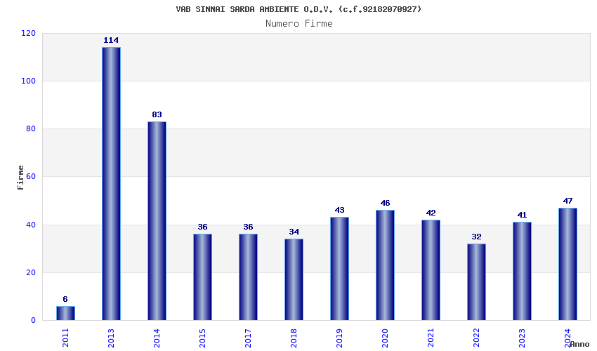| Anno | Firme | Importi | Media | Naz. | Reg. | Prov. | Comu. |