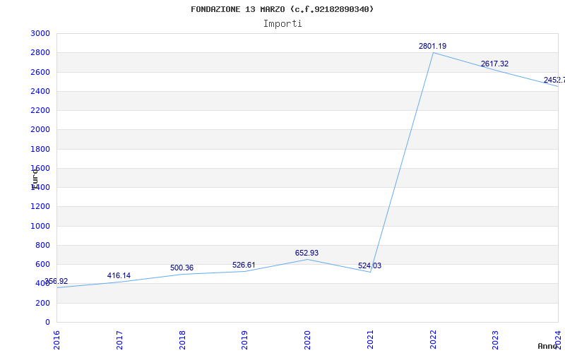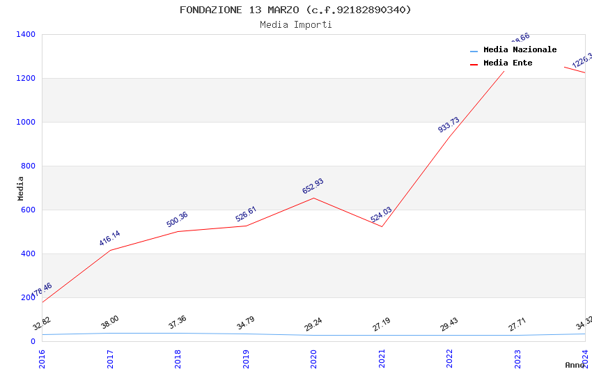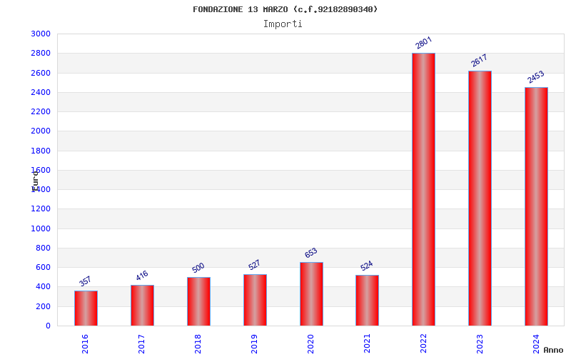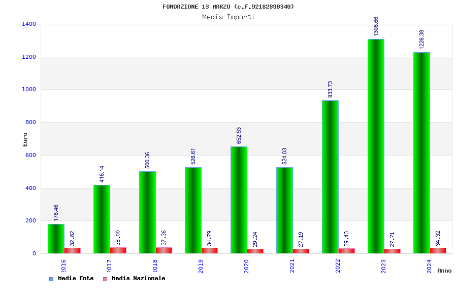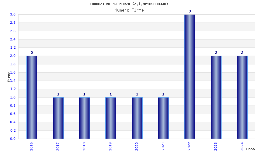| Anno | Firme | Importi | Media | Naz. | Reg. | Prov. | Comu. |