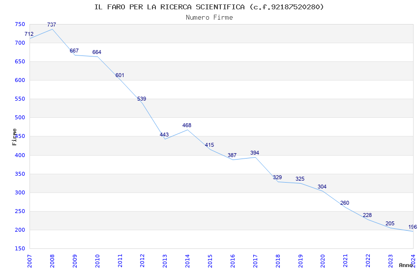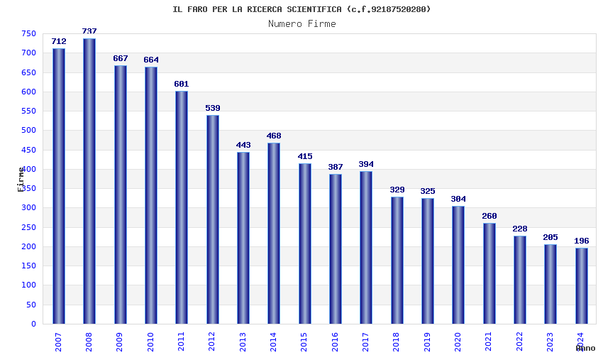 | Anno | Firme | Importi | Media | Naz. | Reg. | Prov. | Comu. |