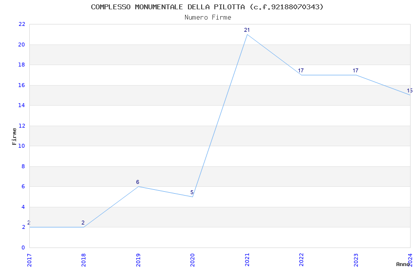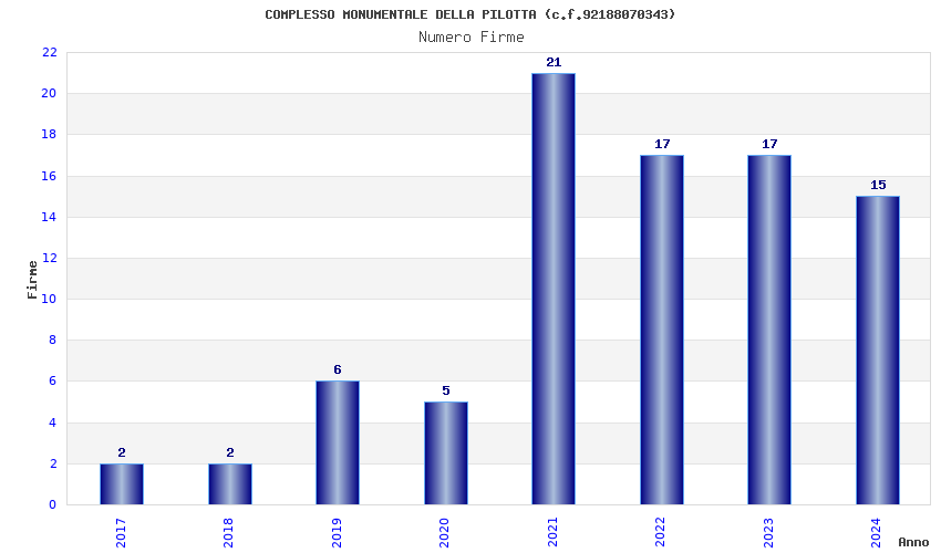 | Anno | Firme | Importi | Media | Naz. | Reg. | Prov. | Comu. |